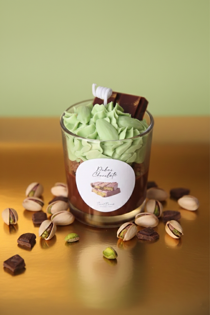 Luxus egy gyertyaformában! Ez az illat a dubai csokoládék gazdag, selymes aromáját idézi meg, melyet lágy, édeskés pisztáciakrém tesz még különlegesebbé. A keleties édességek karaktere elegánsan simul bele a krémes csokialapba, tökéletes választás, ha valami különlegesre és kifinomult illatélményre vágysz.